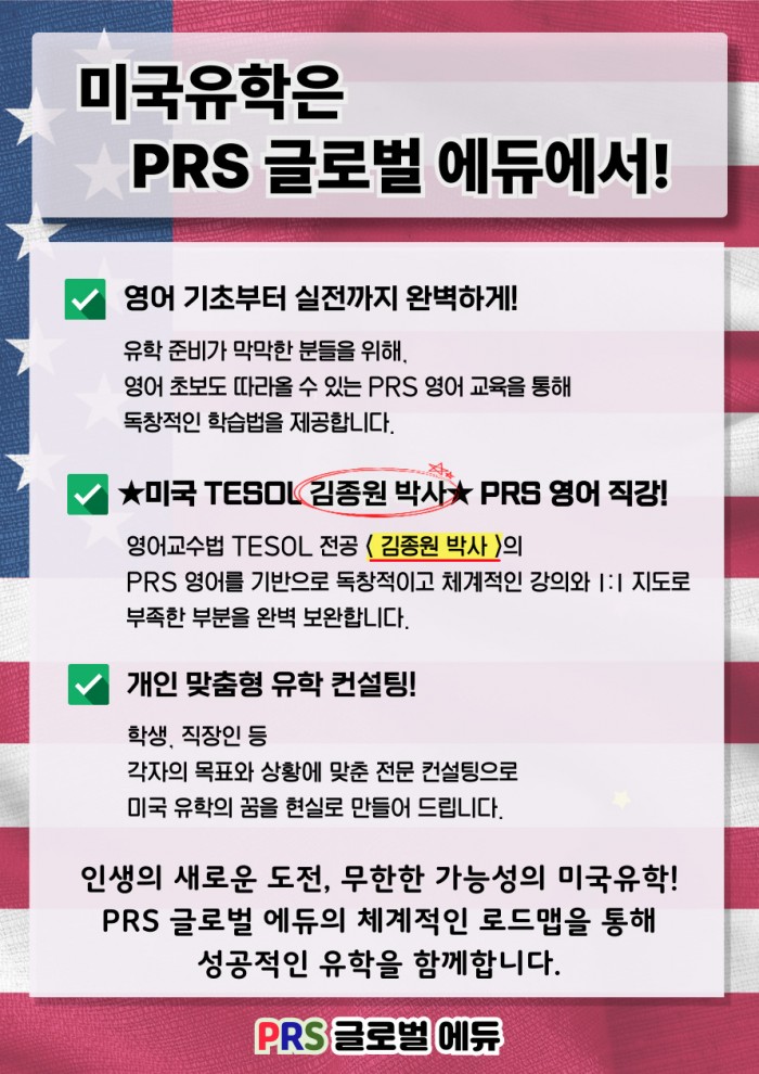 ✨흔들림 없는 미국 유학, PRS 글로벌 에듀에서!✨