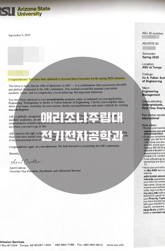 애리조나 주립대 합격